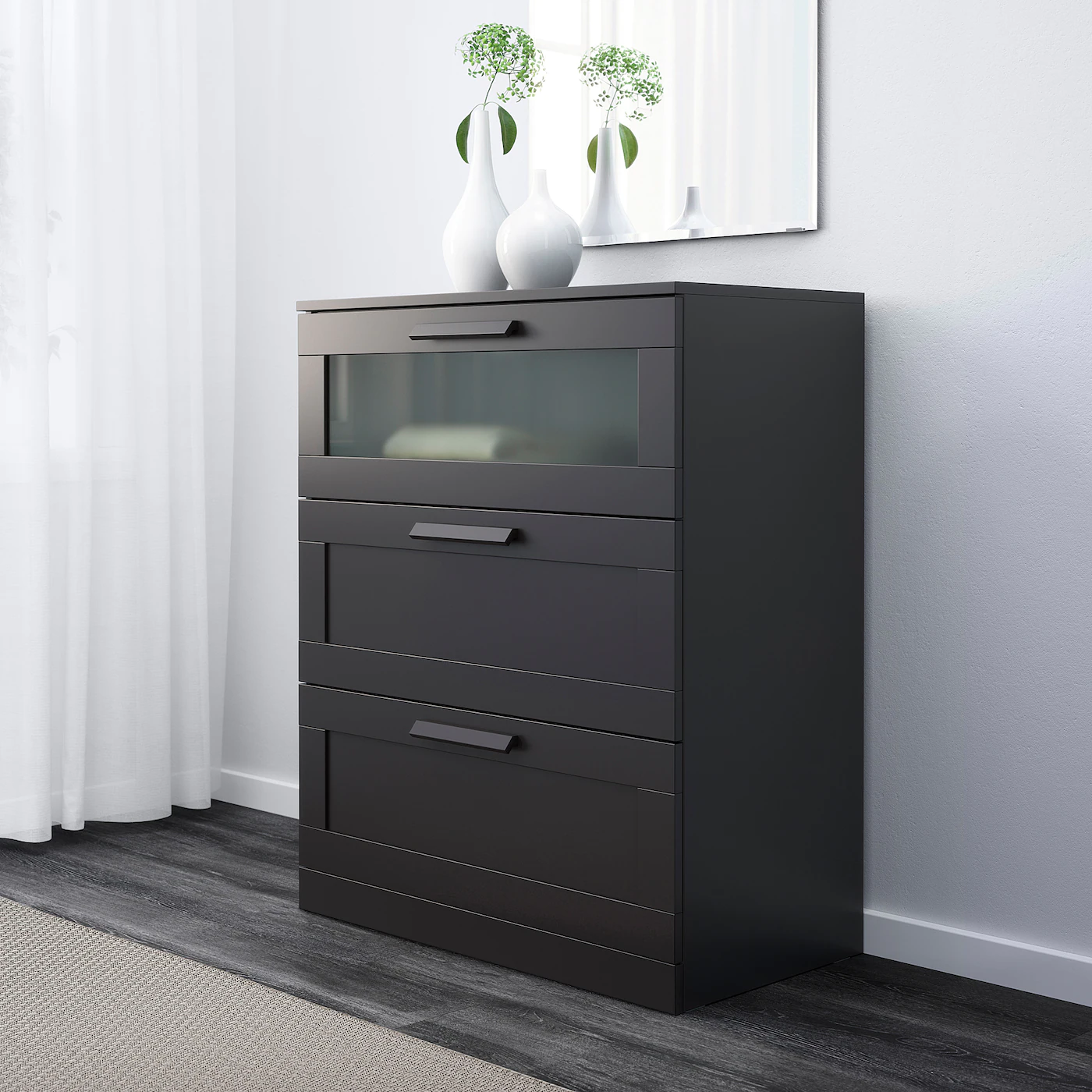 Hot Sale ๐งจ IKEA BRIMNES 3drawer Chest Black/frosted Glass 30 3/4×37 3/8 ” ๐