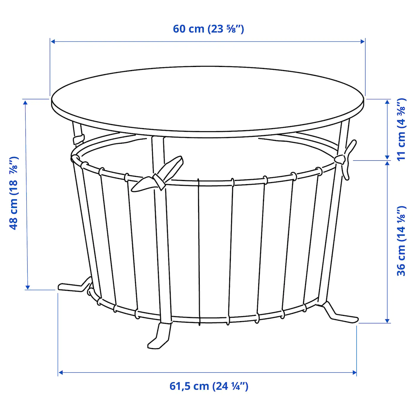 Choose whether you want to use the storage table with or without the fabric bag depending on if you want to store your things visible – or hidden to make the room feel less cluttered. Suitable throughout the home to use e.g. as a coffee table, side table or nightstand. Use this larger storage table on its own or together with the smaller table to enjoy more storage and table space. The wooden tabletop has natural variations in the grain, color and texture that make each table unique.Material