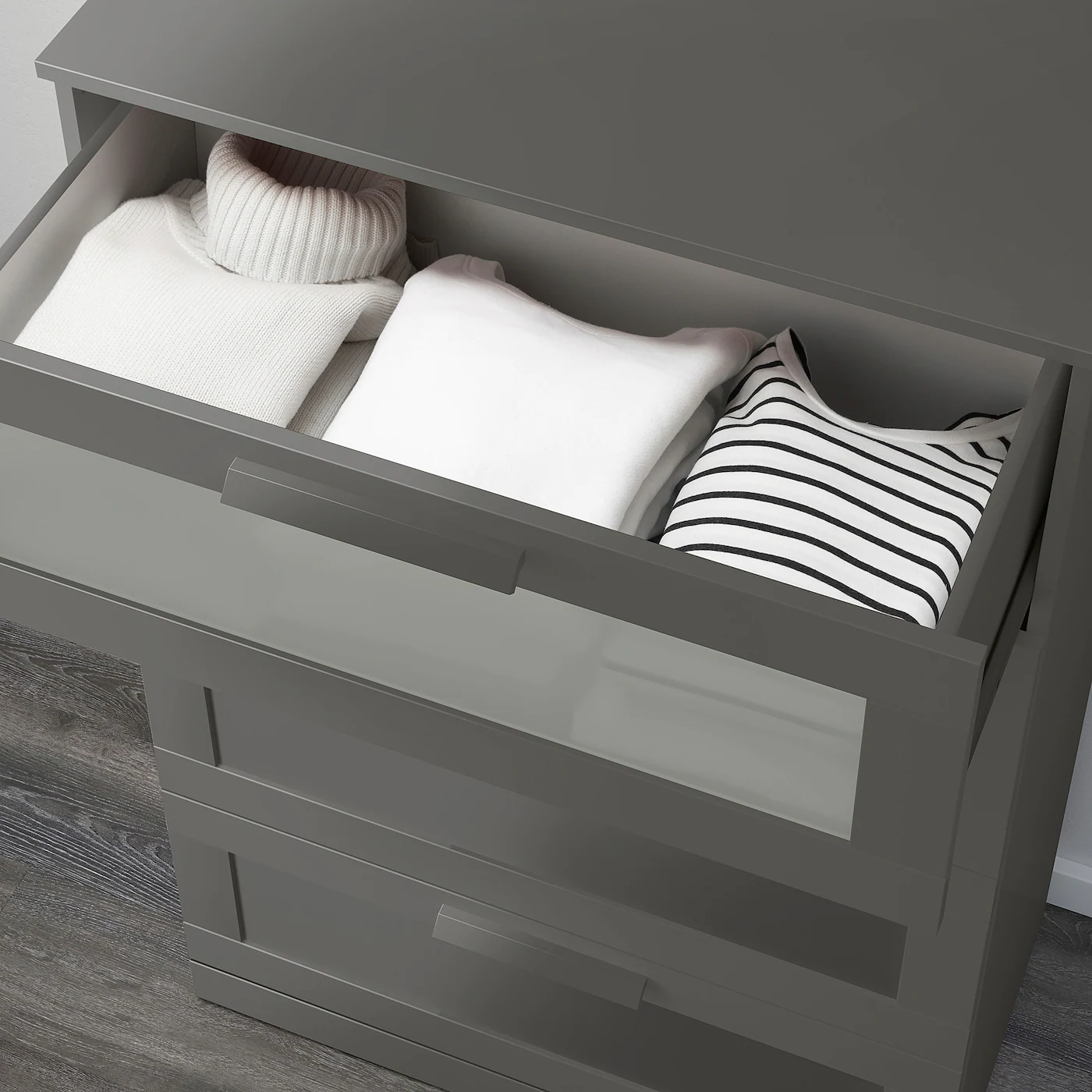 This high chest gives you plenty of storage without taking up too much room. Smooth running drawers with pull-out stop.Material