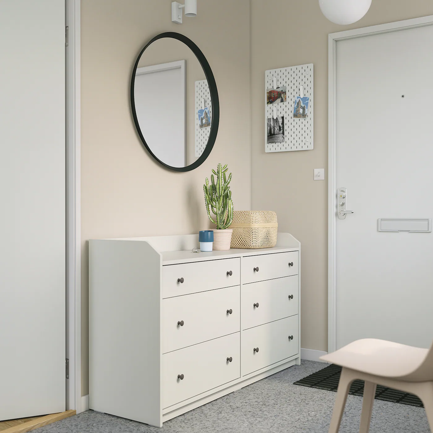 Of course your home should be a safe place for the entire family. Thatโs why hardware is included so that you can attach the chest of drawers to the wall.