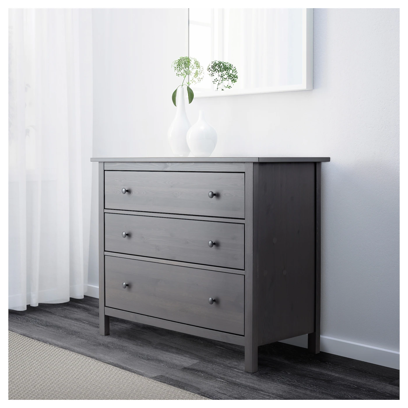 Of course your home should be a safe place for the entire family. Thatโs why hardware is included so that you can attach the chest of drawers to the wall. If you want to organize inside, you can complement with SVIRA box, set of 3.Material