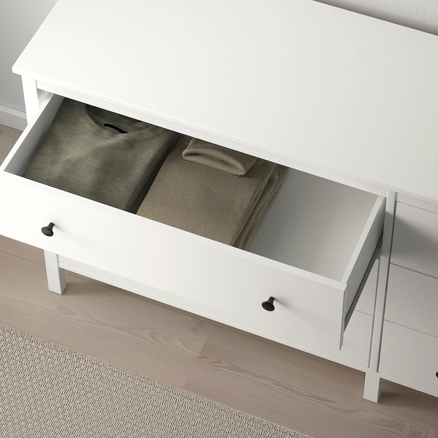 Top panel/ Side panel/ Partition/ Drawer front/ Top rail:Particleboard, Paper foil