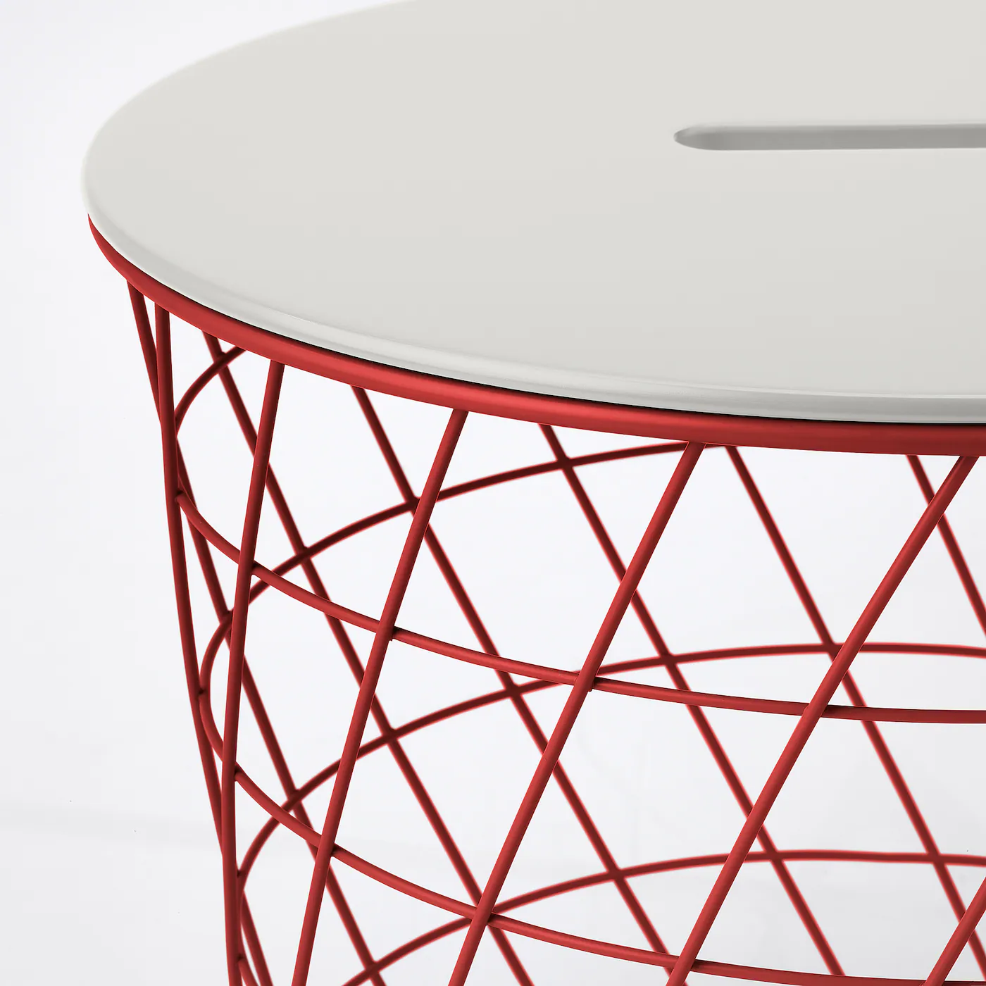 The airy design makes the table easy to lift and move. Suitable throughout the home to use e.g. as a coffee table, side table or nightstand. The strong metal wire is a sturdy and stable construction, both for the practical table top and for your hands when you want to lift the table. A handle in the table top makes it easy to open and get to things stored in the basket. KVISTBRO storage table comes out in a new color now and then, visit our website or your nearest IKEA store so you don’t miss any exciting launch.Material