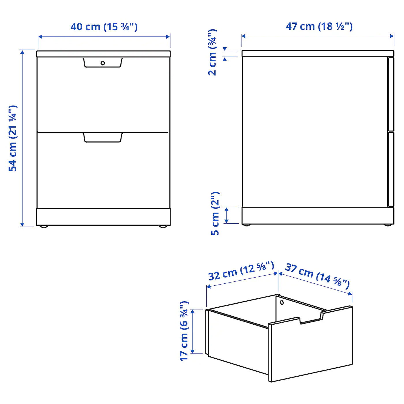 You can easily create your own personal design by mixing chests of different colors. Integrated damper catches the running drawer and closes it slowly, silently and softly. The concealed drawer runners ensure that drawers run smoothly even when heavily loaded. Adjustable feet make it possible to compensate for any irregularities in the floor.Material